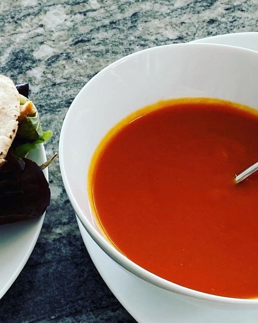 I wanted something light and colourful for lunch this week but the weather was a bit mixed so I fancied soup rather than salads. The result was this sunshine in a bowl grown up tomato soup (butternut squash, tomato and pepper soup). Approx ingredients are shown in the pictures if you want to try it.